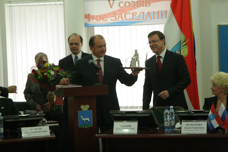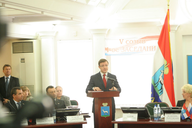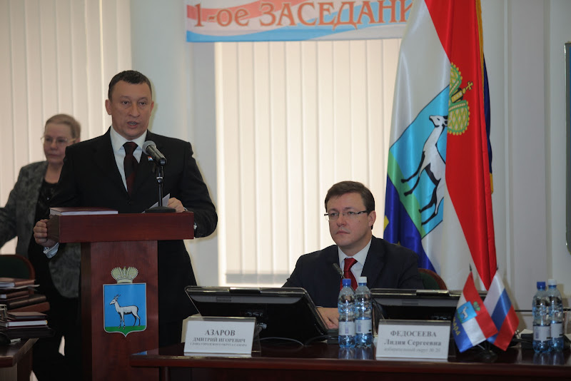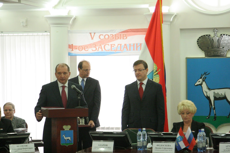 Сегодня в Самарской городской Думе при небывалом стечении VIP-политиков и чиновников Дмитрий Азаров принес присягу и официально стал мэром Самары. Похоже, что для губернатора Артякова это был первый визит в городскую Думу.
