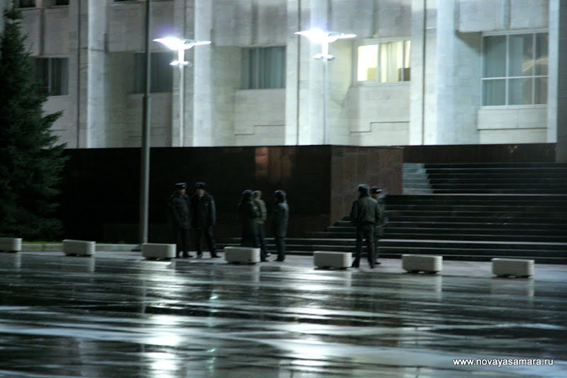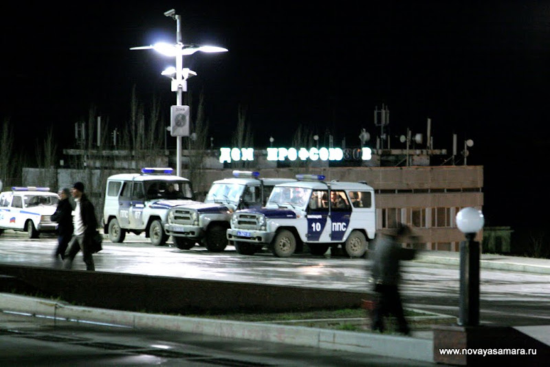 Присутствовавшая на площади милиция внимательно следила за происходящим.
