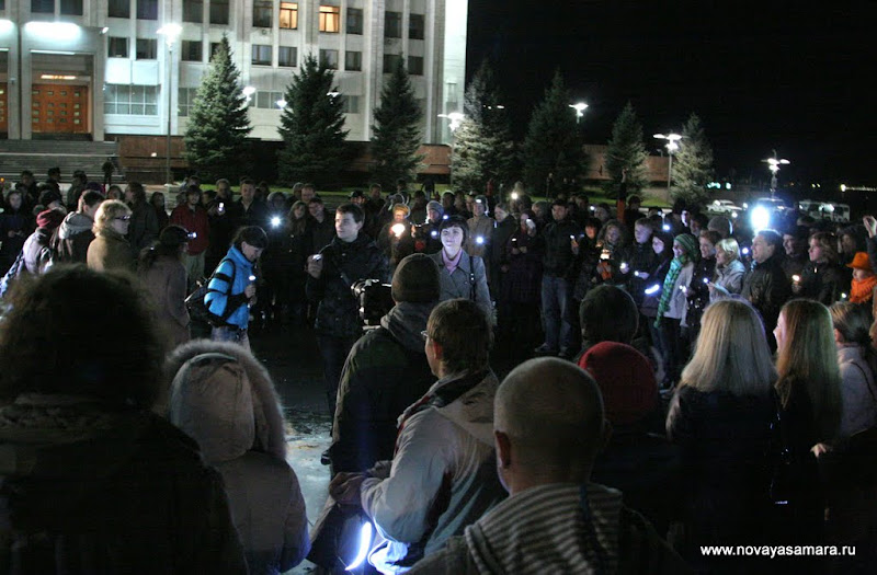 В воскресенье, 14 ноября на площади Славы прошел флешмоб за Самарское время. На площади перед Белым домом собралось около 200 человек. Ровно в 17:00 участники флешмоба зажгли фонари и свечи и выстроились кругом, образовав подобие циферблата. Внутри круга группа участников выстроилась в линию, символизирующую стрелки. Спустя пять минут собравшиеся погасили фонари и через некоторое время покинули площадь. Таким образом участники флешмоба выразили свое отношение к переводу Самары на московское время и уменьшению светового дня на один час.
